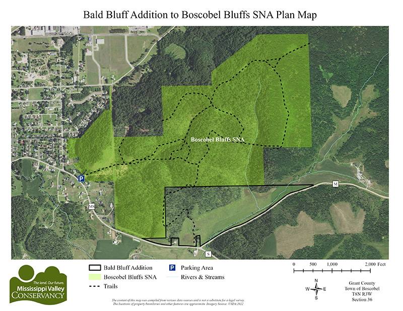 The acquisition of the Bald Bluff Addition aligns with several regional conservation priorities, including Wisconsin’s State Wildlife Action Plan, the Grant County Comprehensive Plan, and the Town of Boscobel Comprehensive Plan. Each of these recognizes the importance of protecting natural areas, wildlife habitats, wetlands, woodlands, and groundwater resources. More than 160 plant species have been document
