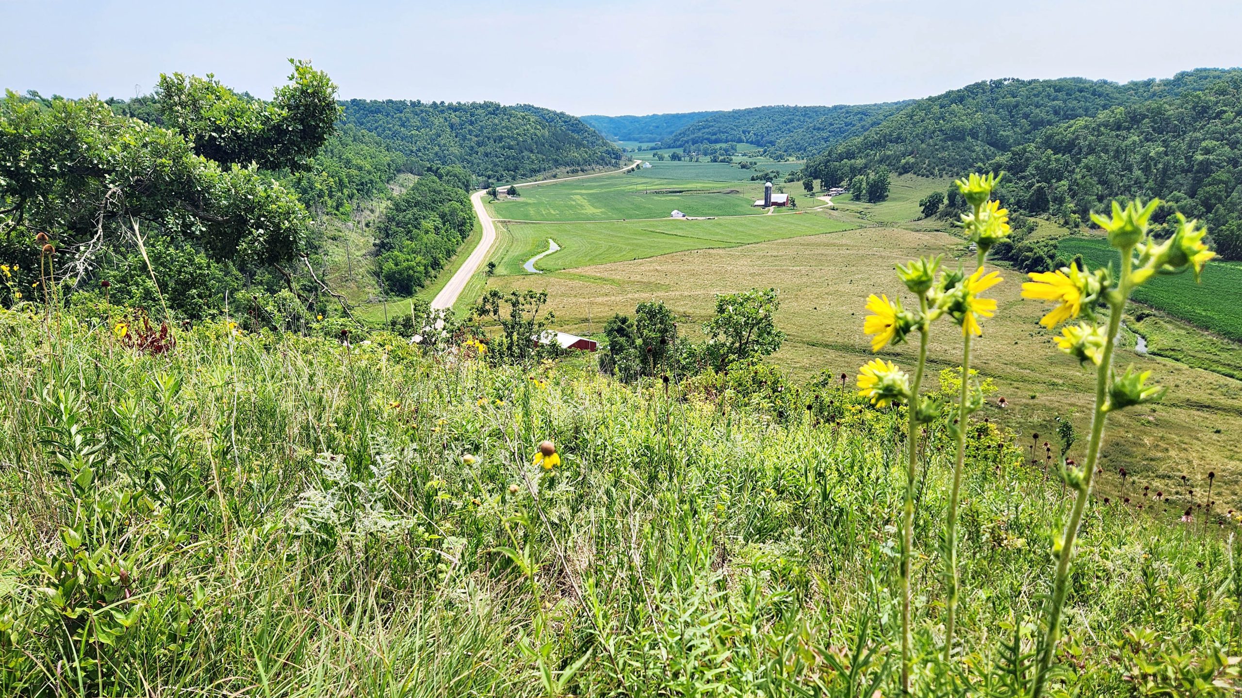The Bald Bluff property offers stunning scenic views of the rural landscape while providing space for native plants and wildlife, like native prarie grasses and flowers. | Photo: Mississippi Valley Conservancy