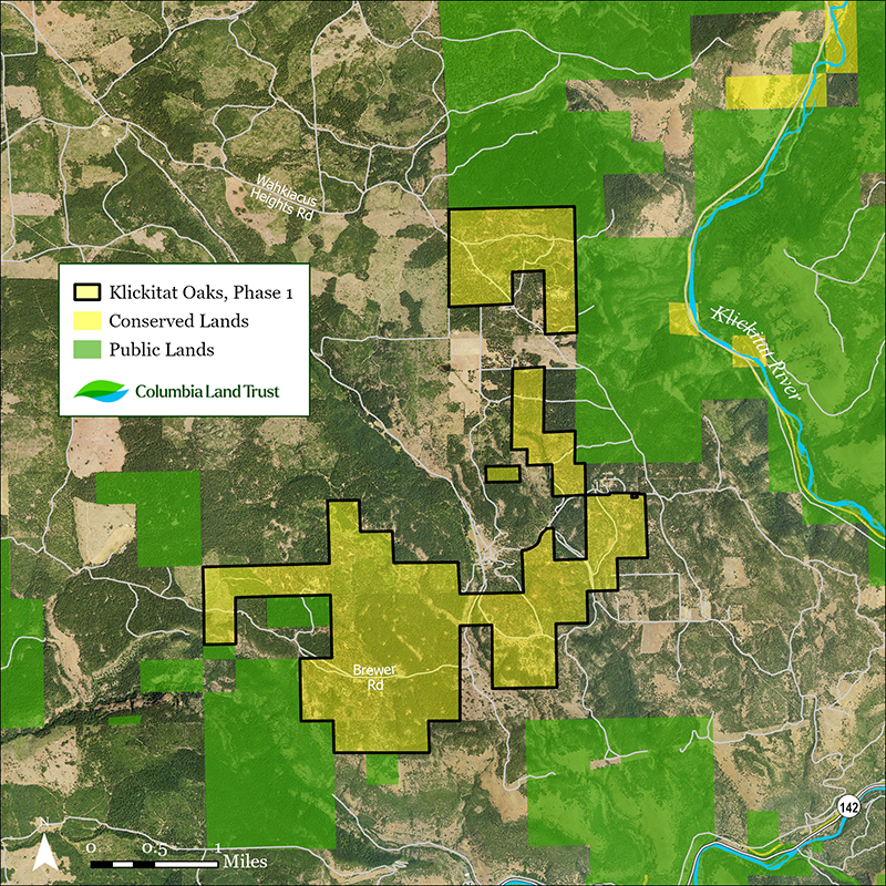 the Klickitat Oaks, Phase 1 property is home to priority oak and pine woodland habitat and is a strategic link in wildlife migration corridors, including the Pacific Flyway.